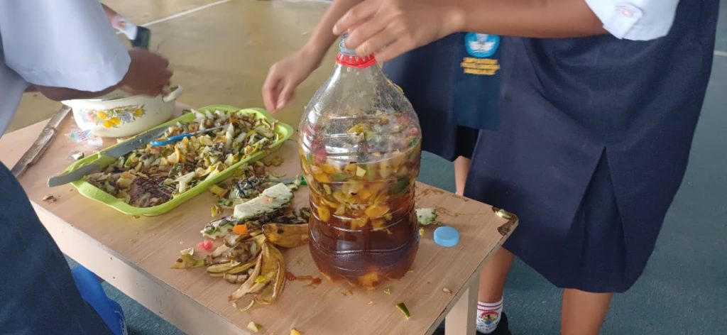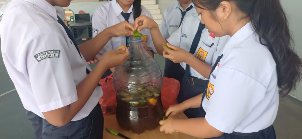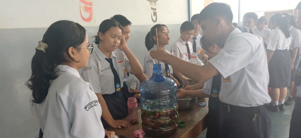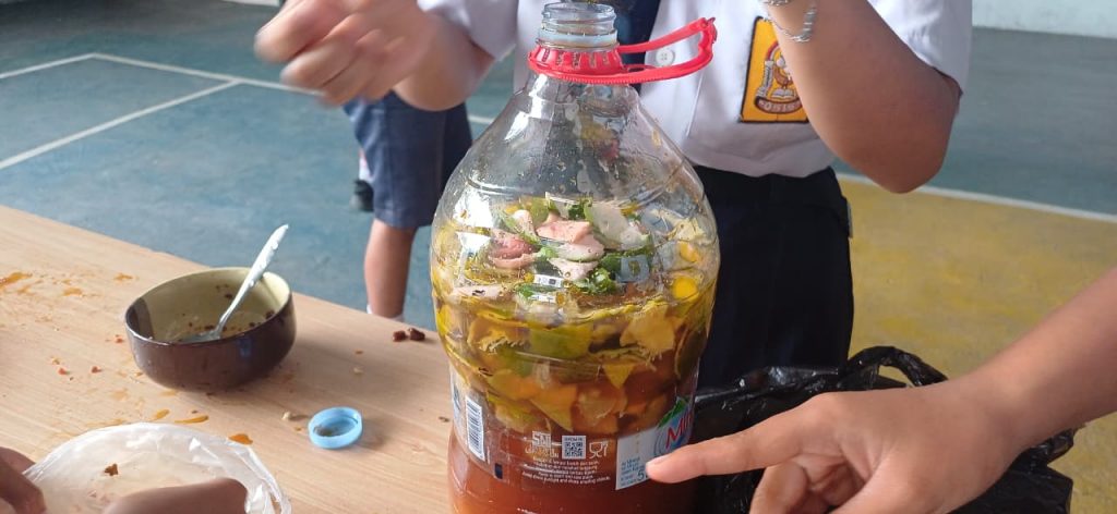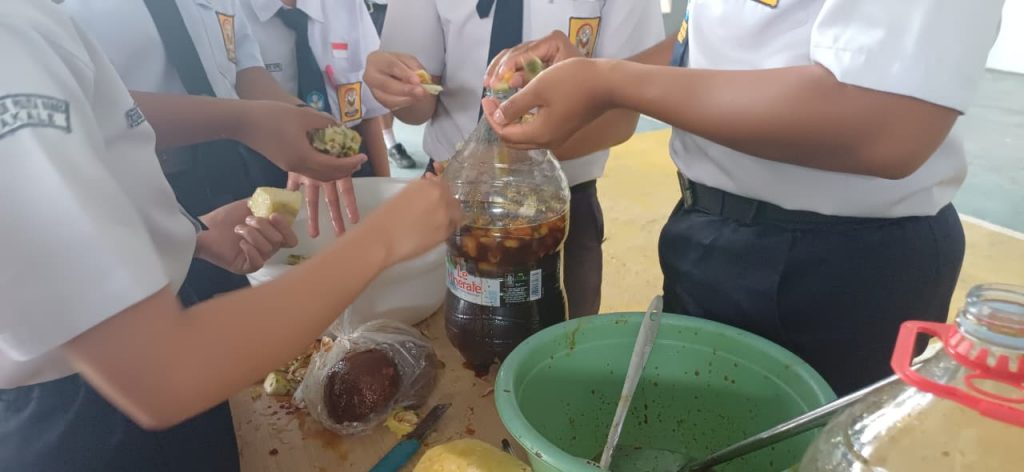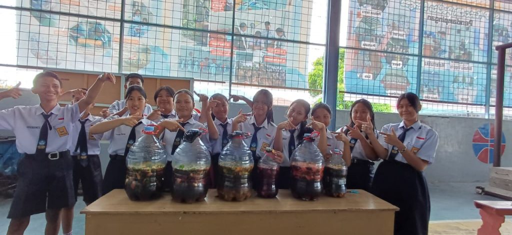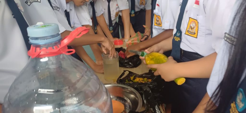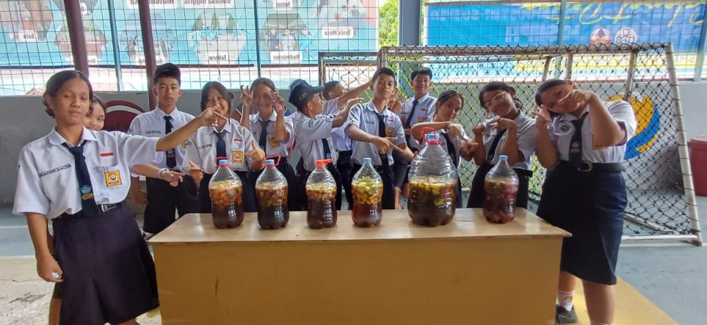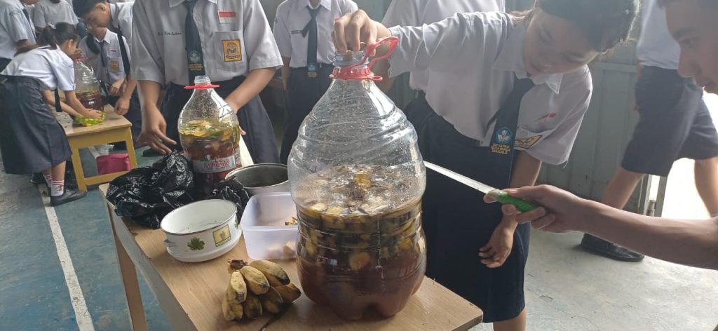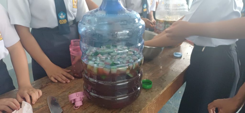 Halo sobat SPB, kalian tahu tidak apa itu Ekoenzin? Ekoenzim (eco-enzyme) adalah cairan alami serbaguna hasil fermentasi limbah organik dapur (kulit buah/sisa sayur), gula (gula merah/molase), dan air dengan perbandingan 3:1:10 selama 3 bulan. Cairan berwarna cokelat gelap dengan aroma asam segar ini kaya akan mikroorganisme, bermanfaat sebagai pembersih rumah tangga, pupuk organik, dan disinfektan alami ramah lingkungan. Siswa-siswi SPB begitu antusias dalam membuat cairan ekoenzim ini, hal ini merupakan salah satu bentuk pendidikan bagi anak untuk memanfaatkan segalah sesuatu di sekitarnya.